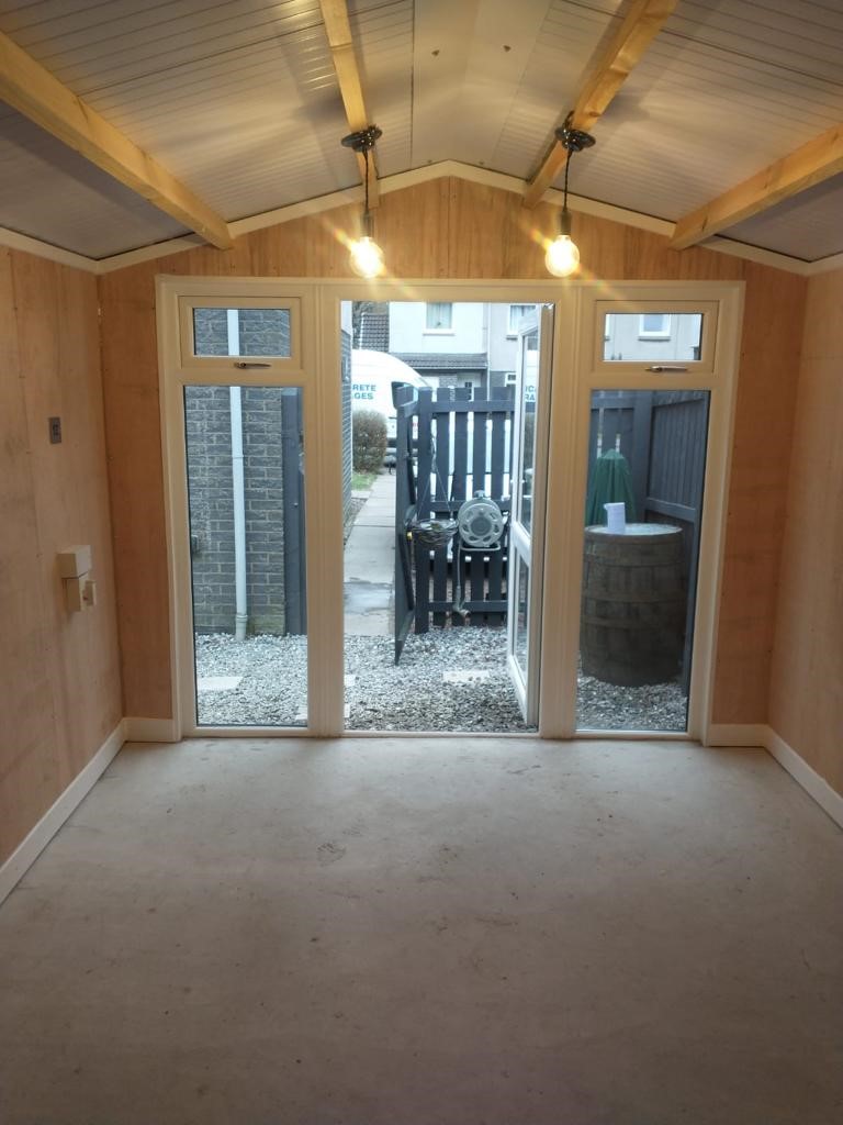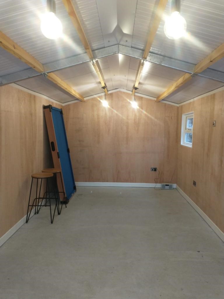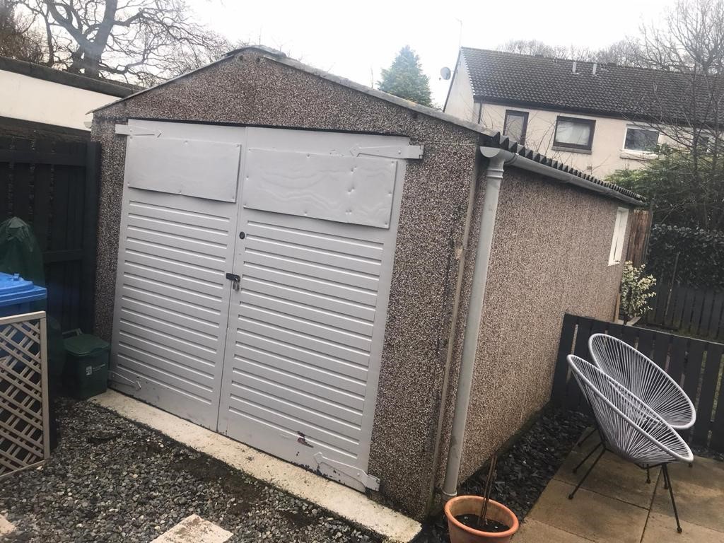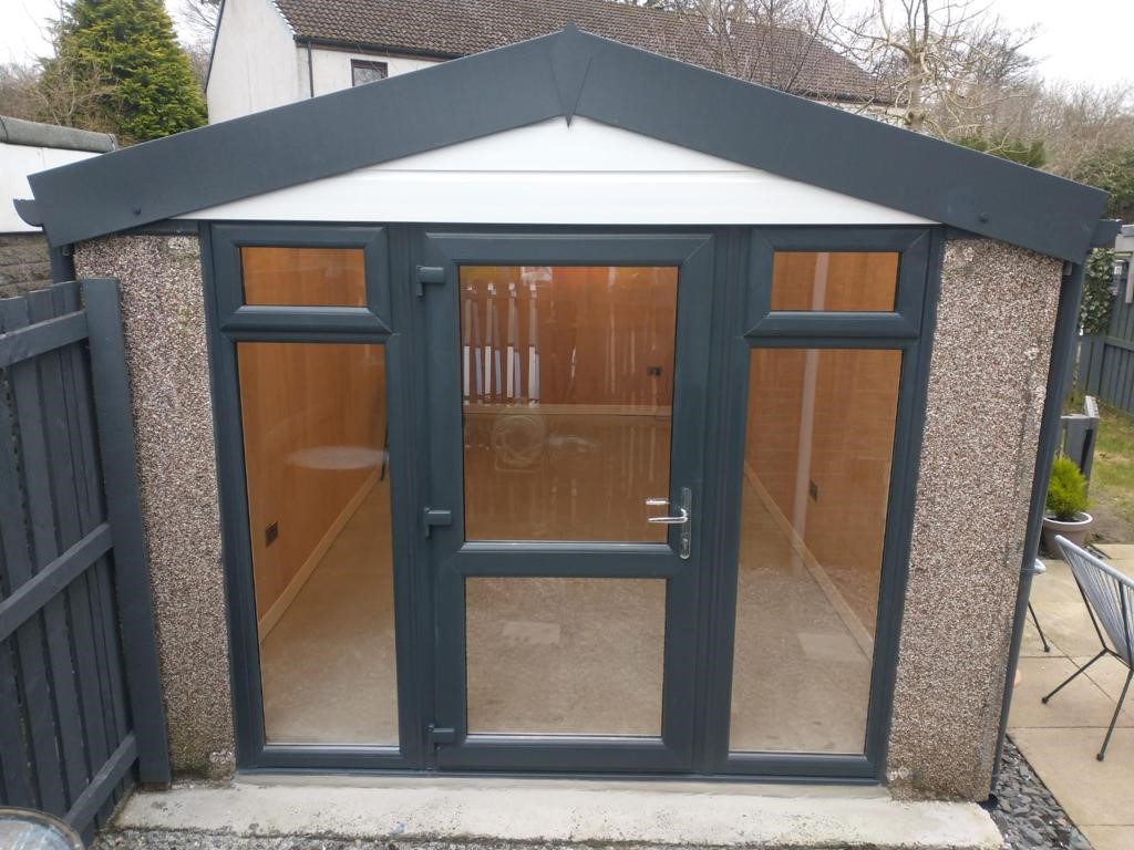 45 year old concrete garage completely renovated insulated roof, walls lined, damp proof floor and double glazed elevation