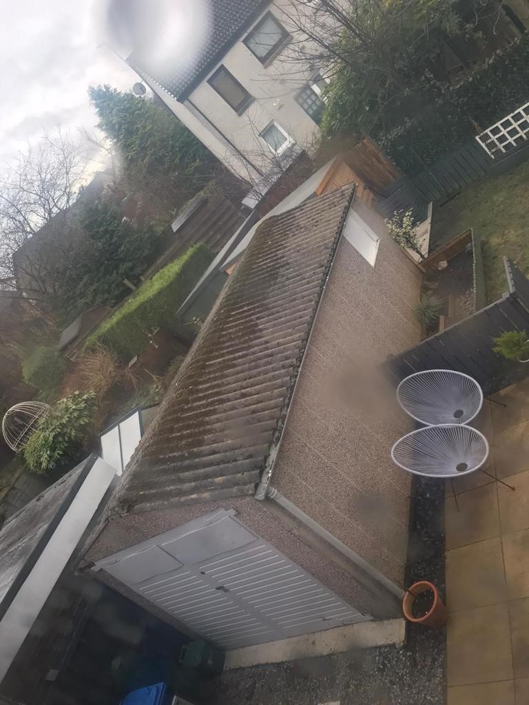 New Garage with an Anthracite roof and red, black and white walls